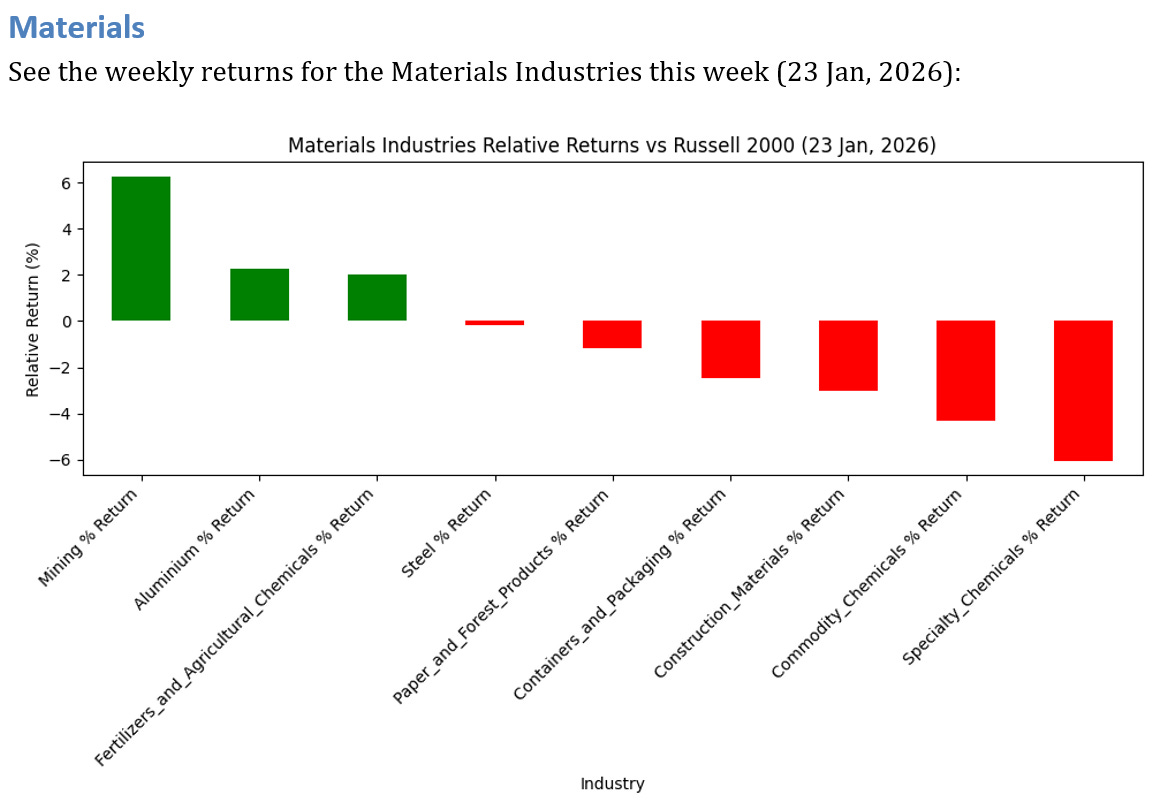 3 Materials Industries UNDERPERFORMED the Russell 2000 by >3%