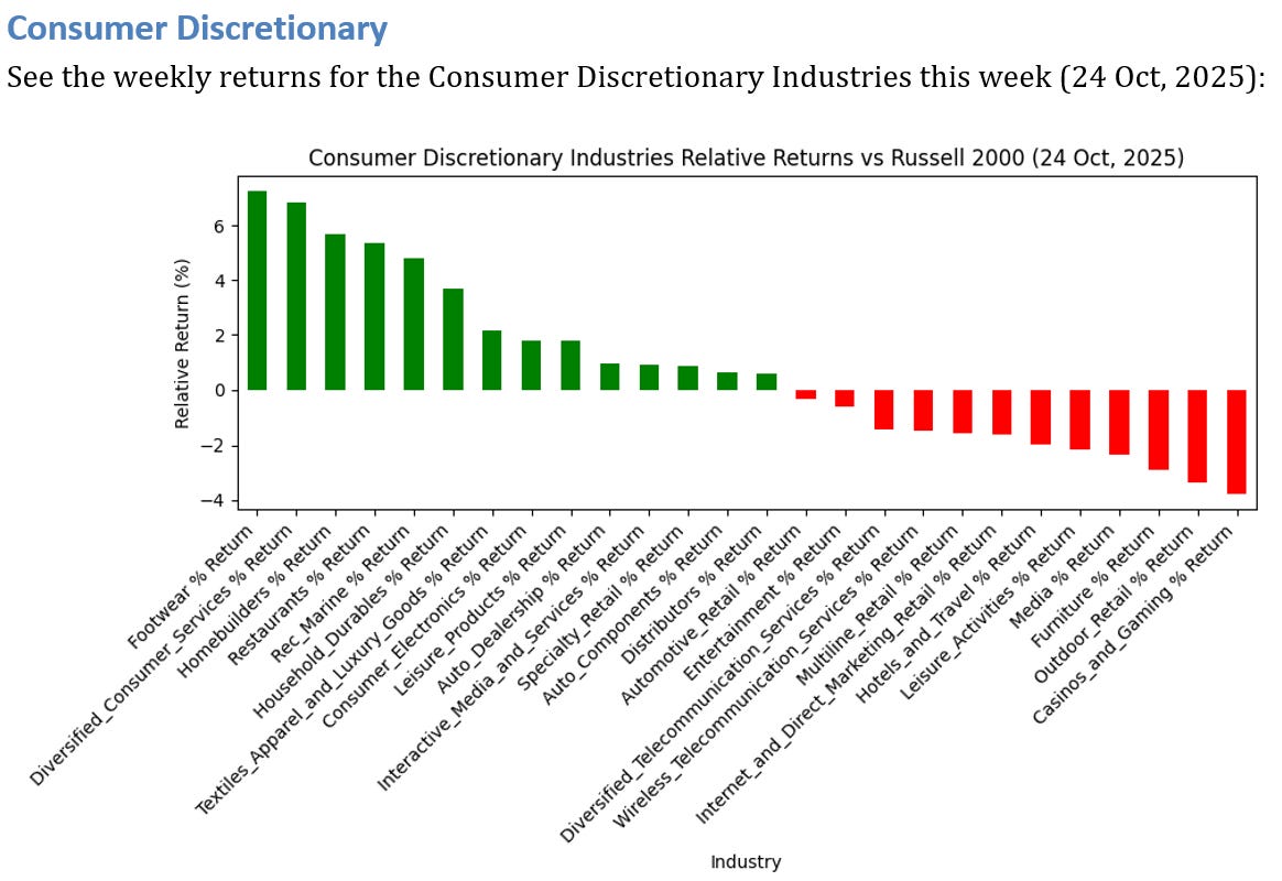 6 Consumer Discretionary Industries OUTPERFORMED the Russell 2000 by >3%