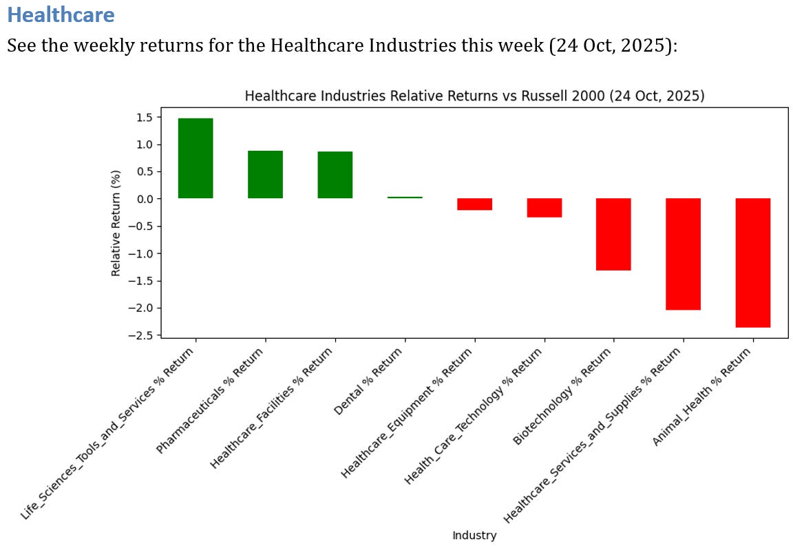 0 Healthcare Industries OUTPERFORMED the Russell 2000 by >3%