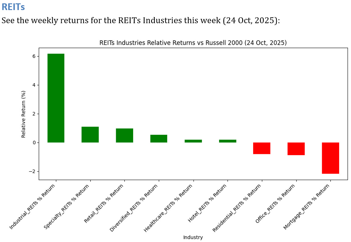 1 REITs Industries OUTPERFORMED the Russell 2000 by >3%
