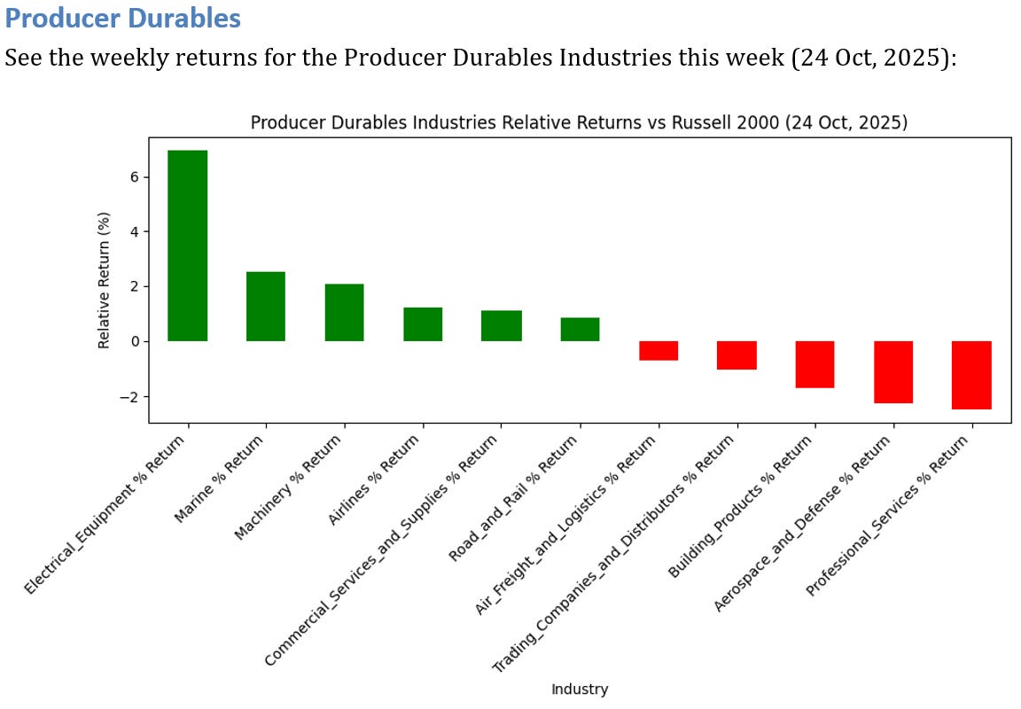 1 Producer Durables Industries OUTPERFORMED the Russell 2000 by >3%