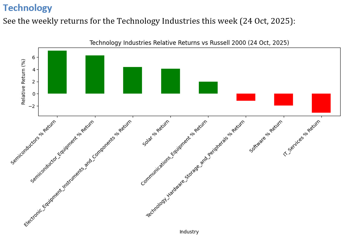 4 Technology Industries OUTPERFORMED the Russell 2000 by >3%