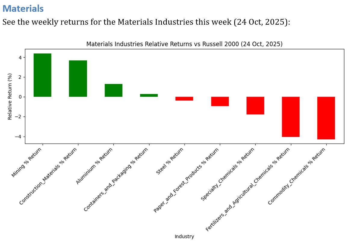 2 Materials Industries OUTPERFORMED the Russell 2000 by >3%