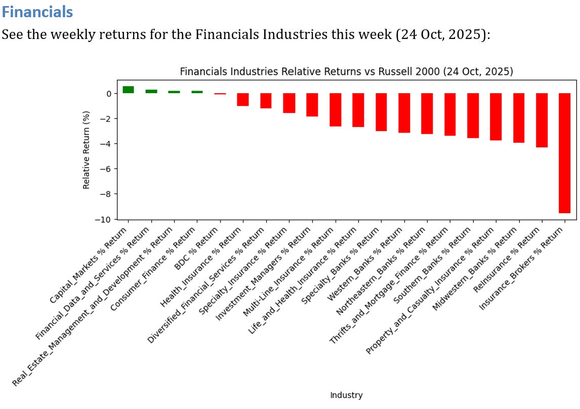 9 Financials Industries UNDERPERFORMED the Russell 2000 by >3%