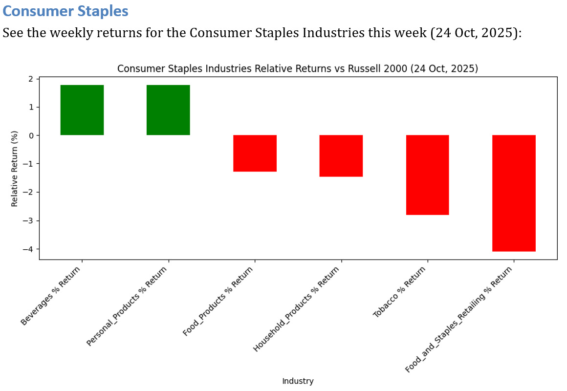 1 Consumer Staples Industries UNDERPERFORMED the Russell 2000 by >3% this week