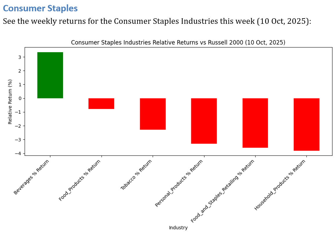 1 Consumer Staples Industries OUTPERFORMED the Russell 2000 by >3%
