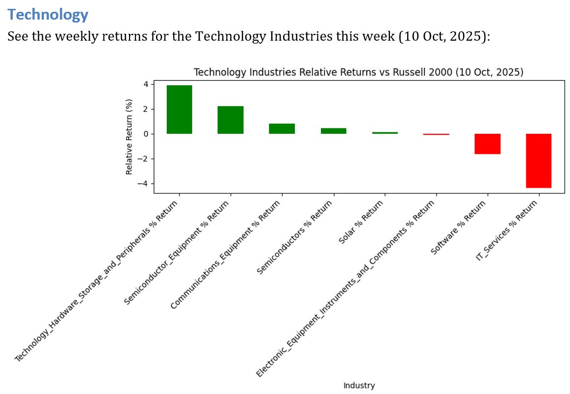 See below for the weekly performance of 8 Technology Industries.