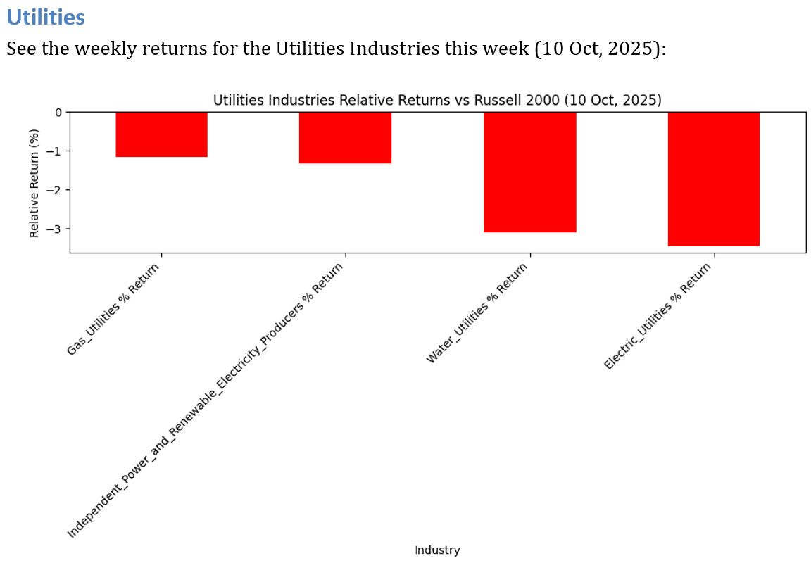 See below for the weekly performance of 4 Utilities Industries.