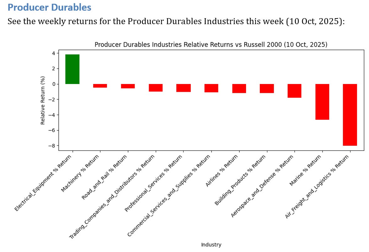 See below for the weekly performance of 12 Producer Durables Industries.