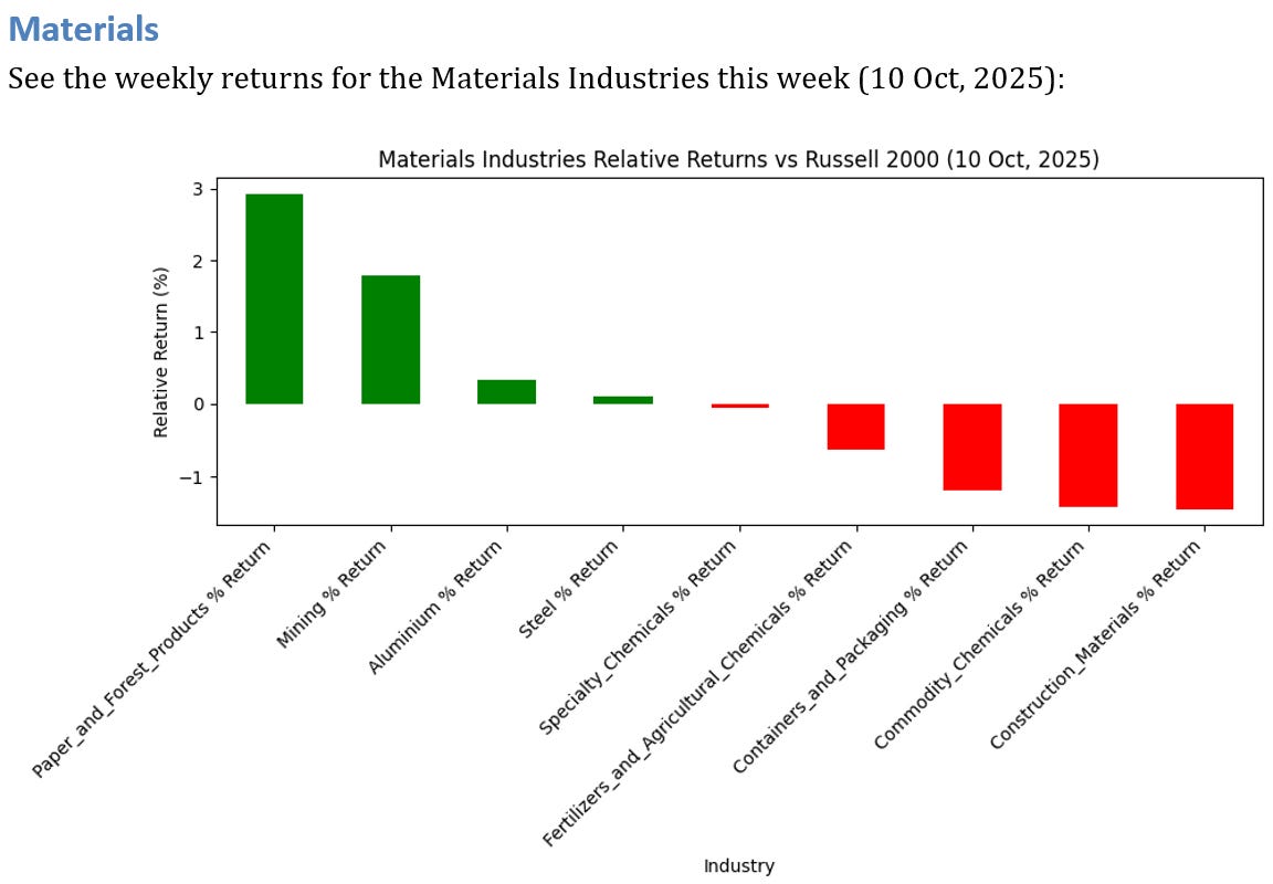 0 Materials Industries UNDERPERFORMED the Russell 2000 by >3%