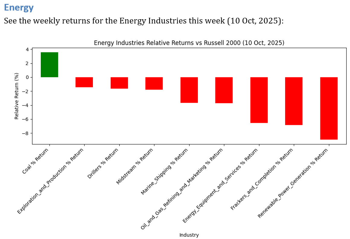 5 Energy Industries UNDERPERFORMED the Russell 2000 by >3%