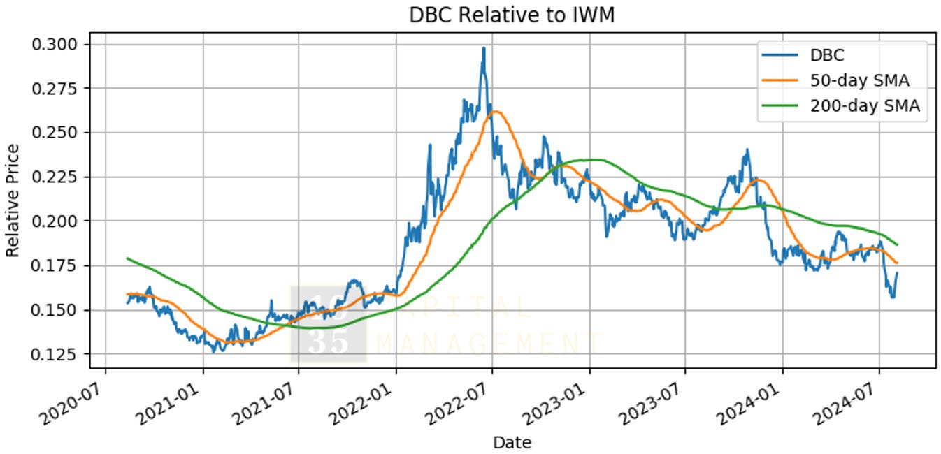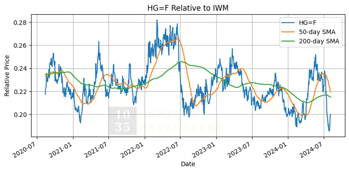 Next, we delve into the relative performance of each sector compared to the Russell 2000, and highlight the performance of the broad commodity index and copper prices relative to the Russell 2000. This section concludes with a detailed comparison of Large Cap vs. Small Cap performance.